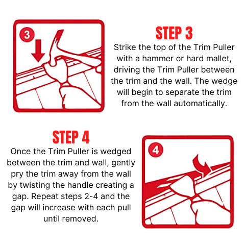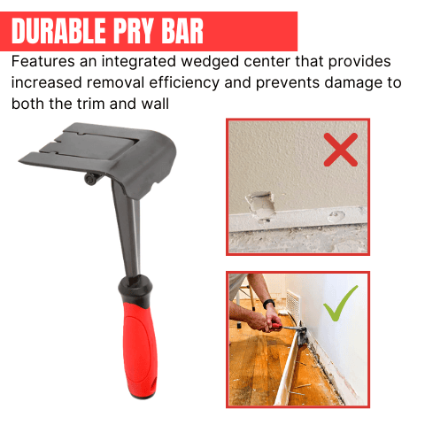 ✅EFFICIENT: This trim removal tool has a broader, flatter, and wider contact area than other traditional tools, as well as an integrated wedged center that improves removal efficiency and protects both the trim and the wall.