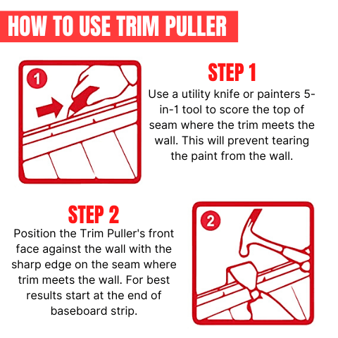 “We’re removing a lot of baseboard trim and it spans the 1960s to 2020 and comes in several sizes. You can put this up against the wall in the tiniest of gaps and it will pull it off much more easily than using your hands. So far, it hasn’t left any stains on our walls or trim.” – Lester G.